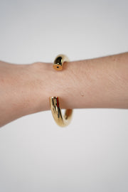 Meta Description: The Sora Chunky Bracelet is a modern open cuff in high-polish gold. Minimal yet bold—perfect for stacking or wearing solo.