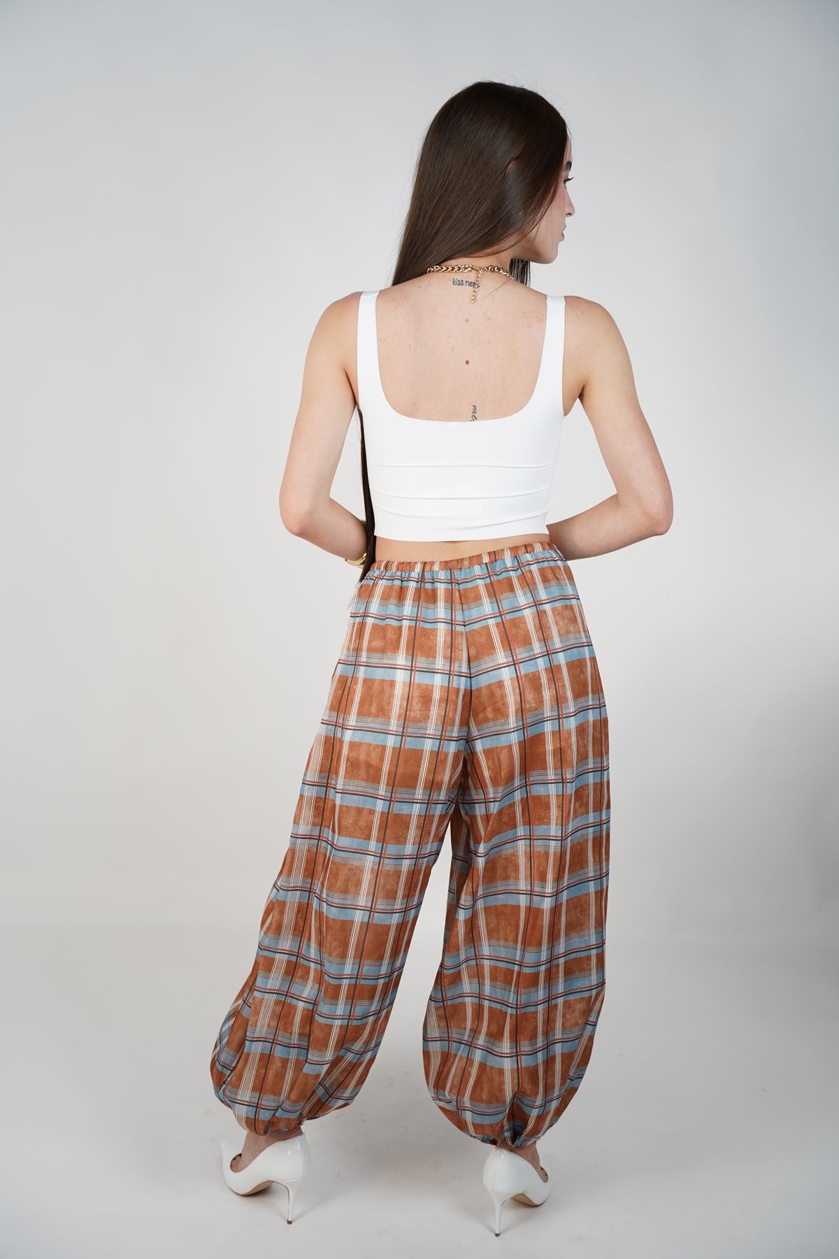Syra Plaid Aladdin Pants – Relaxed Boho Balloon Fit