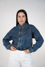 Valence Denim Bomber Jacket | Cropped Denim Jacket for Women