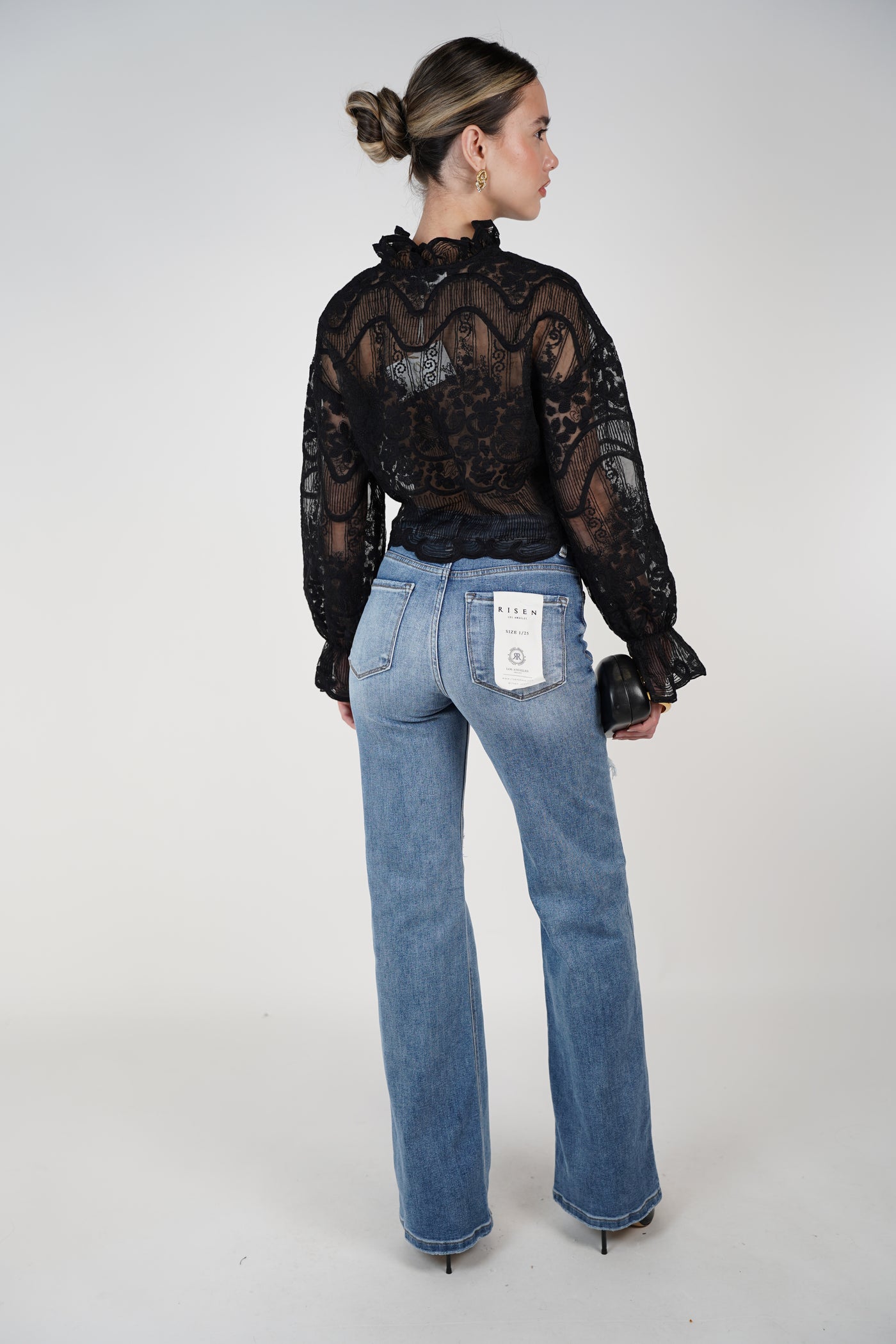 Meta Description: Zira Wide Leg Jeans feature distressed knees and a relaxed fit. Soft vintage wash for effortless everyday style. Shop now at Carema Boutique.