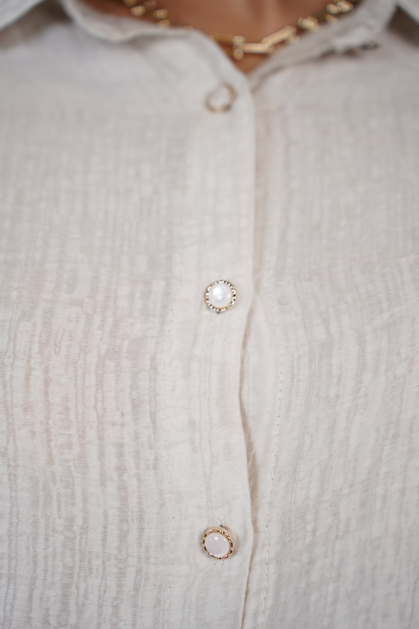 Oversized button-down top with collar and slit sleeves