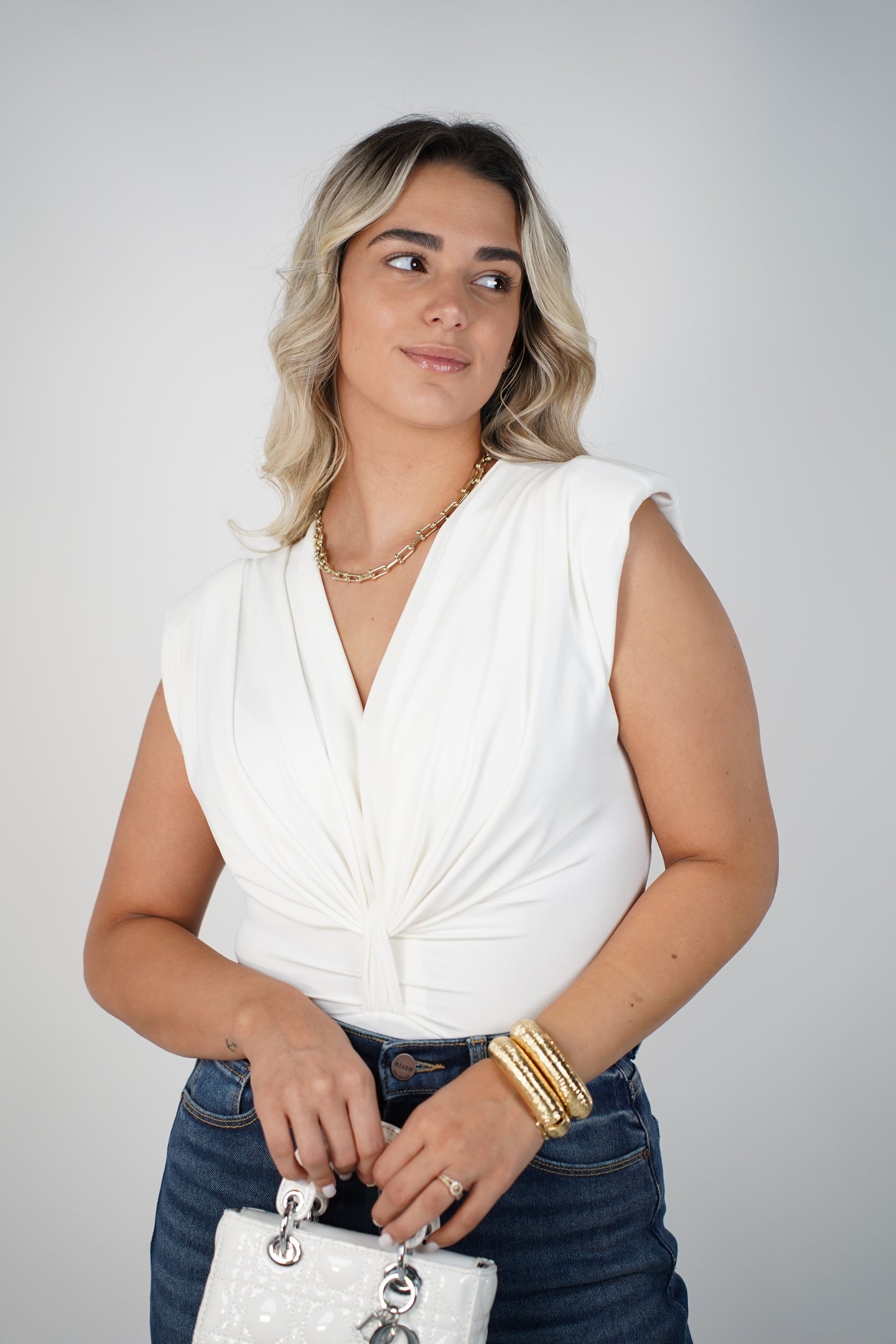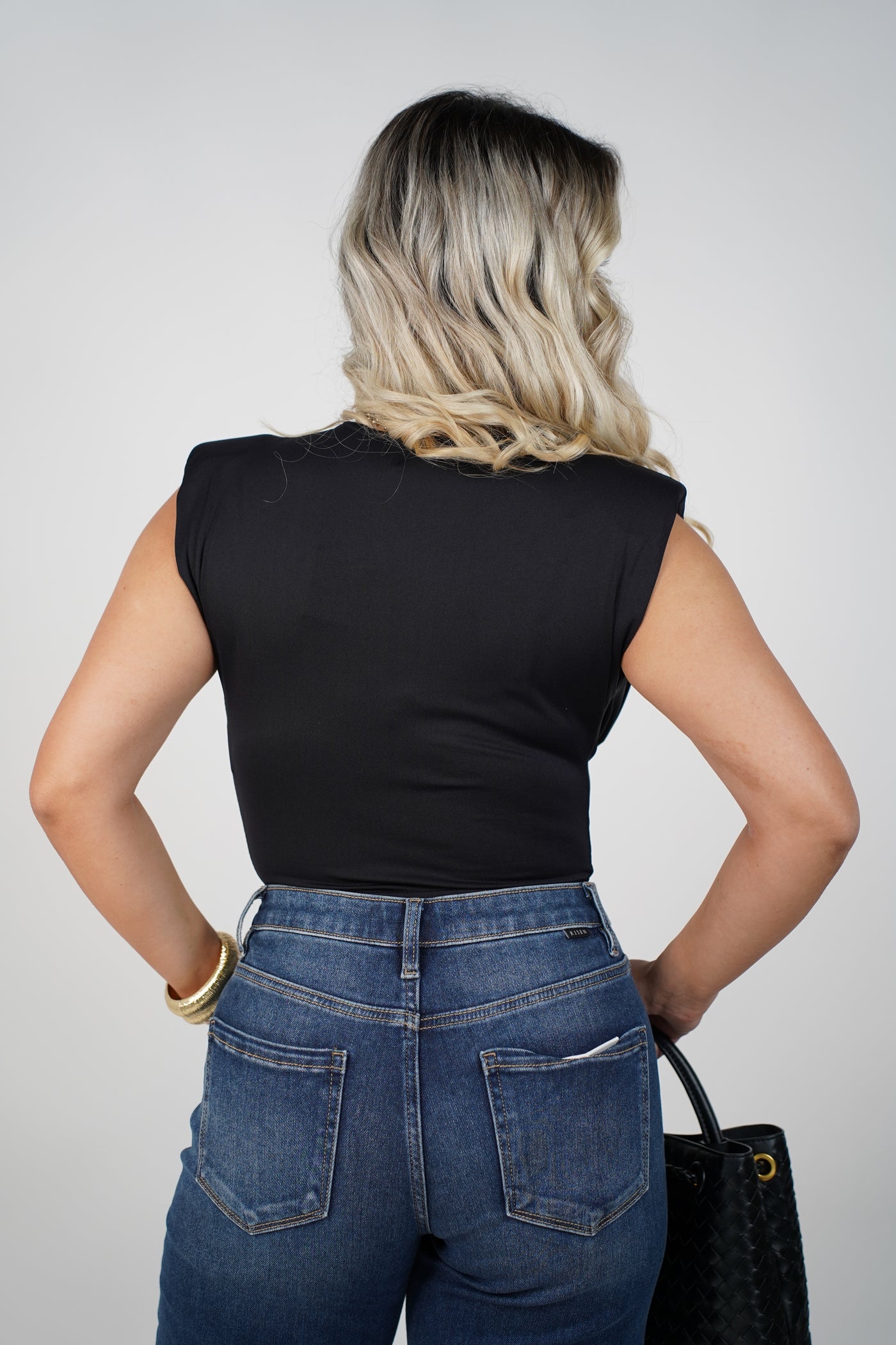 Marcelita Twist Front Bodysuit | Chic Sleeveless Stretch Top