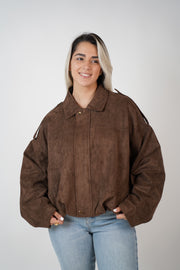 Select Suede Bomber Jacket – Soft Oversized Suede Jacket - Brown / Small