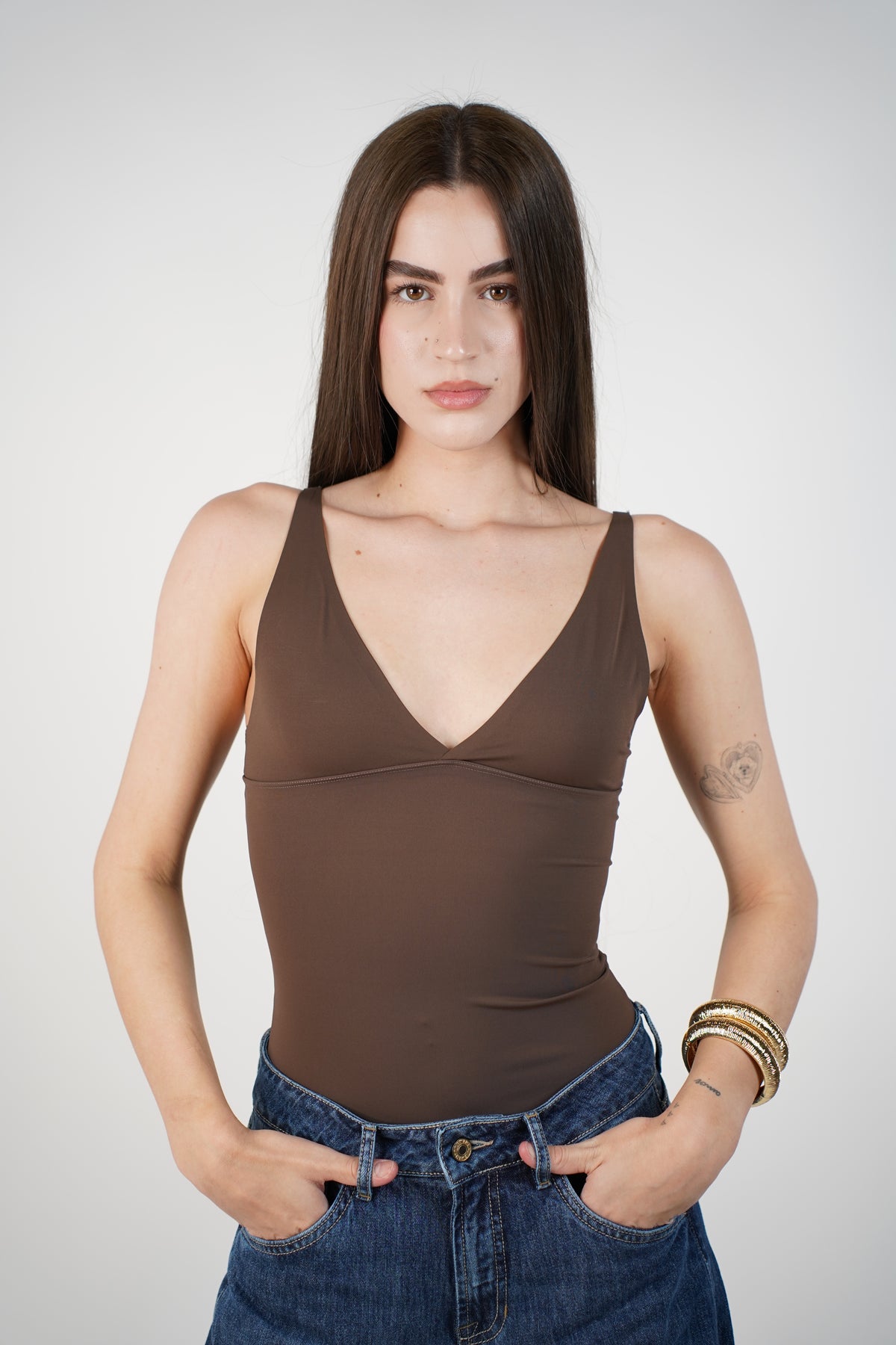 Taly Seamless Bodysuit – Deep V Everyday Essential - Brown / Medium