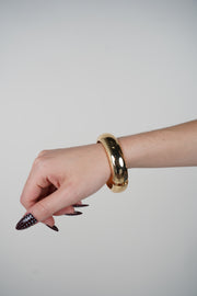 A glossy, high-shine gold bangle designed to make a bold, confident statement.