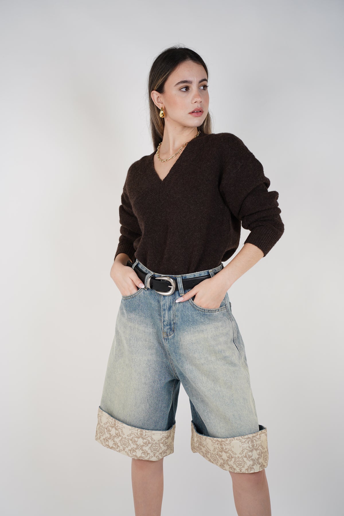 Tirra Belted Bermudas | Foldable Faded Denim Shorts with Belt – Carema Boutique