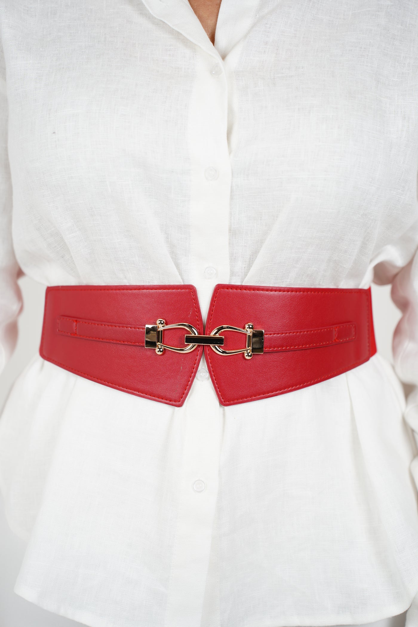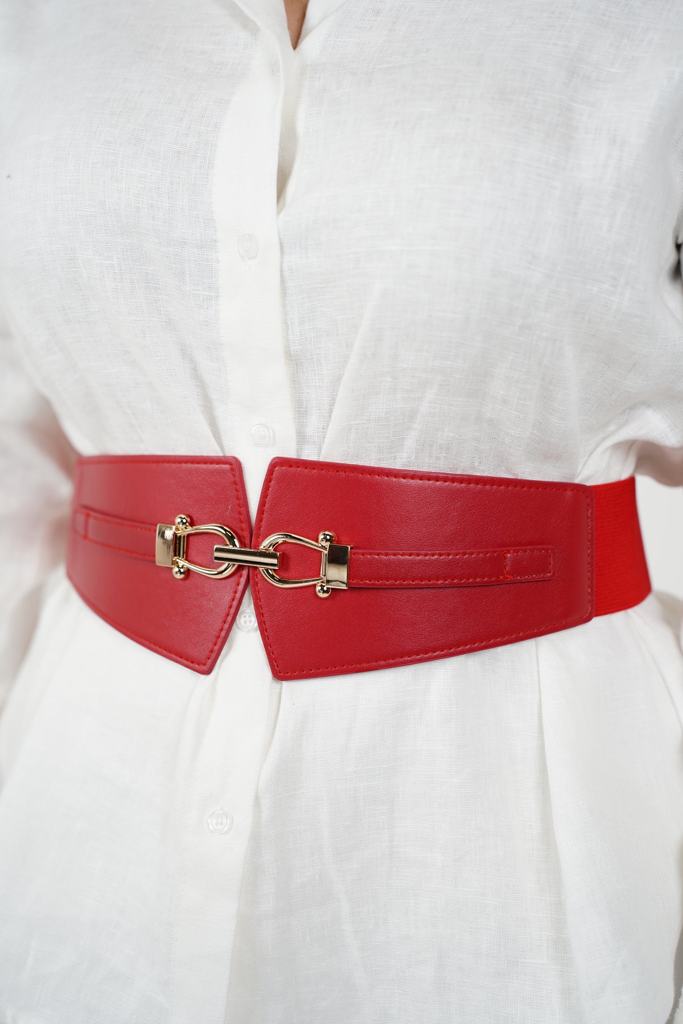 The Veyra Horsebit Leather Belt brings timeless sophistication to your wardrobe. Designed with a structured faux leather band and a polished gold horsebit clasp, this belt adds a refined touch to any outfit while defining the waist beautifully.