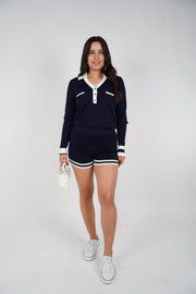 A sporty-chic romper with a polished polo-inspired silhouette.